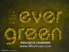叶片字制作过程并不复杂,难点是创意思路的突破。文字中不能单单只有叶片,还需要有藤蔓,叶片上有水珠,同时还可以加入一些小花朵,小昆虫等来活跃...