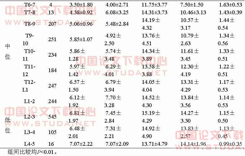 表1 中位与低位穿刺时硬膜外阻滞扩散情况