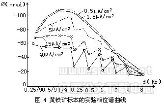 对激电非线性效应,国内外研究多集中于电流密度较大时的情况。何继善教授则独辟蹊径,建立了电流密度较小时矿物—电解质溶液系统的等效电路模型。借助于非线性数学理论,推导出该电路的过电位响应,为研究非线性激电提供了基本的理论指导。在此基础上,分析计算了双频电流作用下该电路的过电位响应,发现了一些特殊的现象,且得到实验结果的证明。图4是黄铁矿标本的实验相位谱曲线。结果表明,在双频电流作用下,各种矿物的激电频谱都将出现锯齿状非线性特征。不同矿物这种特征是不相同的。利用这些差别便可区别不同的矿物,因而可能发展为一种经济的评价激电异常源性质的方法。科学通报(1994No.5)发表了这一研究成果;地球物理学报亦将发表更全面的研究成果。