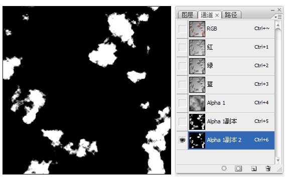 2、复制出“Alpha1副本”通道,调整色阶,将对比度增强,执行反相,以获得正确的选区。