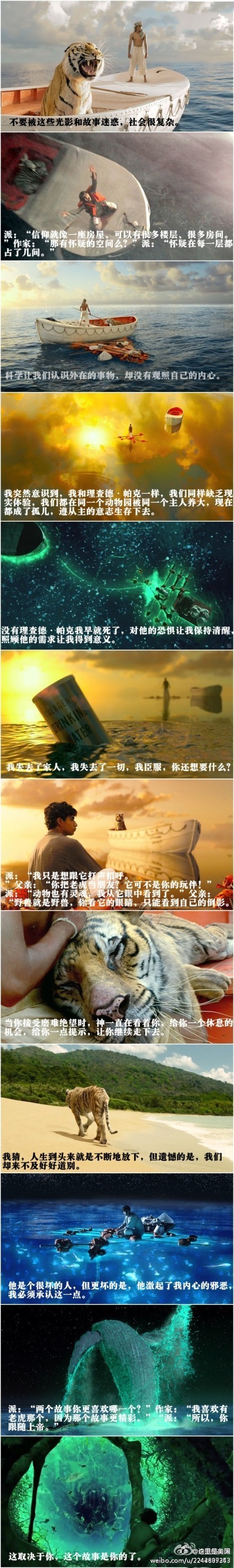 派:“两个故事你更喜欢哪一个?”作家:“我喜欢有老虎那个,因为那个故事更精彩。”派:“所以,你跟随上帝。”