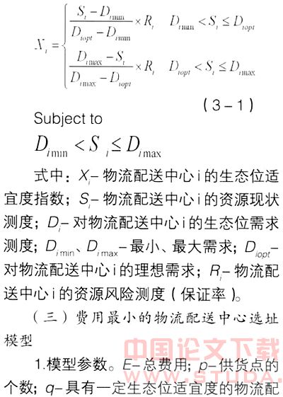 关键词:物流配送中心 生态位 生态位适宜度 选址模型