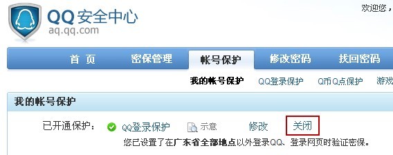 4、如何取消QQ登录保护?