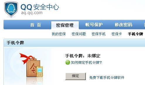 登录QQ和网页时支持验证手机令牌、密保手机和密保卡三种密保手段,您只需要绑定其中一种即可开通QQ登录保护。